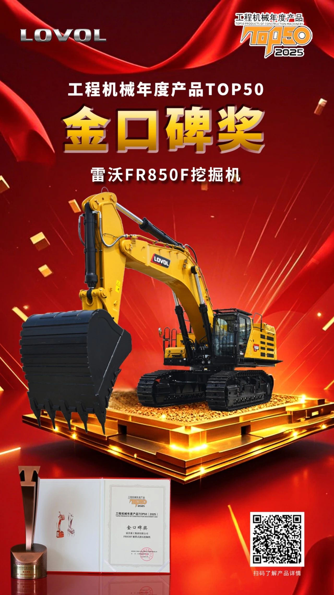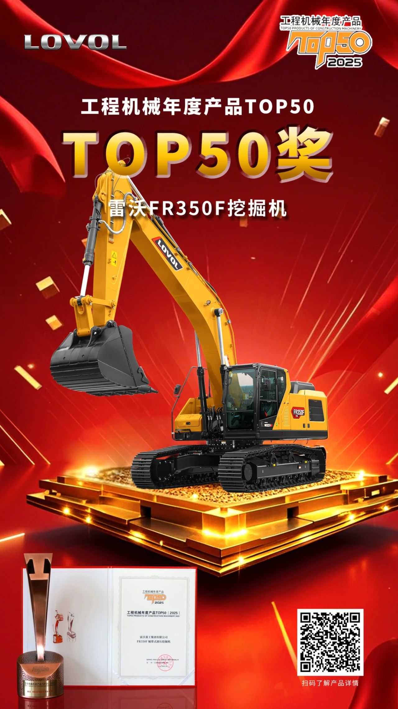 雷沃重工斬獲2025工程機械年度產(chǎn)品TOP50多項榮譽