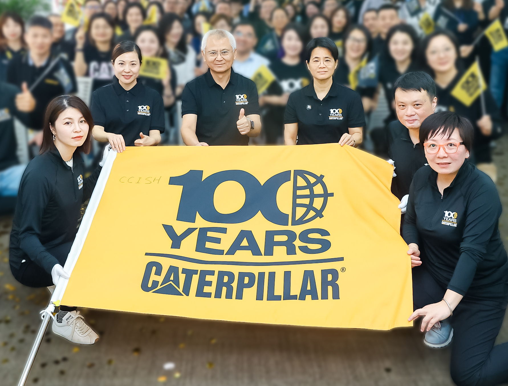 “旗跡中國”慶典接力:象征百年匠心的主題旗幟在卡特彼勒各地工廠接力傳遞,表達卡特彼勒員工傳遞公司的價值觀、傳承和對未來的期許。