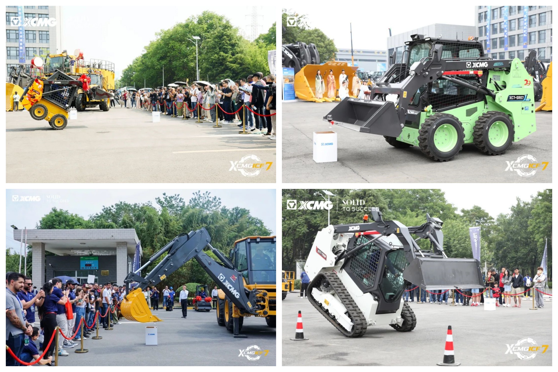 步入會場,精彩上演的工程機械情景劇即刻引爆全場激情。徐工XC7-SR04滑移裝載機化身“機械哪吒”,與XC7-TR08履帶式滑移裝載機、XC7-SR07EV無人駕駛滑移裝載機、XC8-S3570挖掘裝載機聯袂登場,在動感節拍中呈現一場力量與技巧的視聽盛宴。