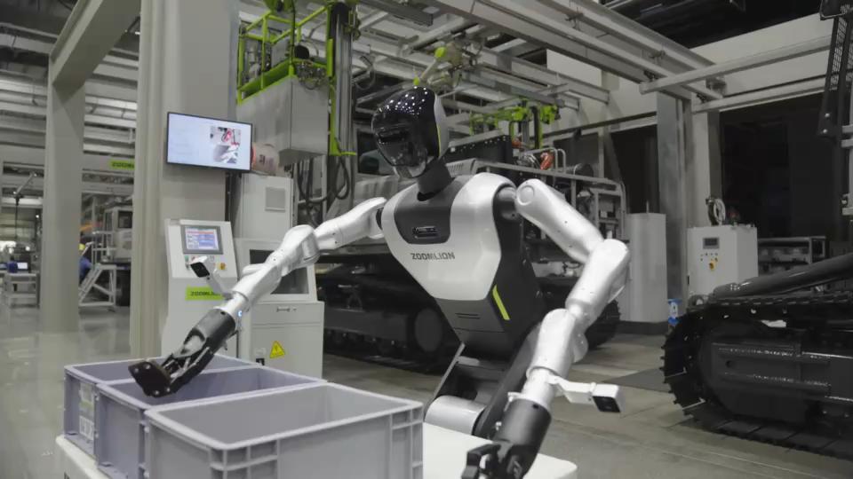 中聯重科自主研發的人形機器人在裝配產線作業